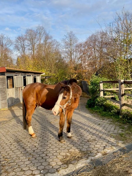Ich suche eine Pflegebeteiligung, für meinen lieben, entspannten Senioren- Ponywallach. Nestors Herz ist groß, aber auf dem Papier ist er nur 148 cm groß. Er ist bereits 31 Jahre alt und freut sich über tägliche Bewegung und Pflege. Du solltest die Vorteile und Bedürfnisse eines älteren Pferdes zu schätzen wissen, nämlich Allrounderfahrung im Gelände, Bodenarbeit und seine Lernbereitschaft. Im Gegenzug nimmst du Rücksicht auf seine Bedürfnisse und gymnastizierst ihn gesunderhaltend und motivierend. Nestor ist in Aachen im Reitstall Sonnenweg zu Hause. Hier sind Außenplatz, Roundpen, Reithallte, Sattelkammer und Gelände zum Spazierengehen vorhanden. Er steht in einer Außenbox mit Paddock. Die Pferde sind den Sommer über täglich auf der Weide (Mai bis Oktober) und im Winter auf dem Auslauf. Damit er nicht ganz "einrostet", wäre mir ein regelmäßiges Bewegen wichtig, daher suche ich eine Pflegebeteiligung für ihn, welche 2 x in der Woche etwas mit ihm macht, ihn putzt und schmust. Du solltest mind. 12 Jahre sein und schon etwas Erfahrung mit Pferden haben. Bei Unsicherheiten, kann ich dir gern helfen. Falls dein Interesse geweckt wurde, freue ich mich von dir zu hören.