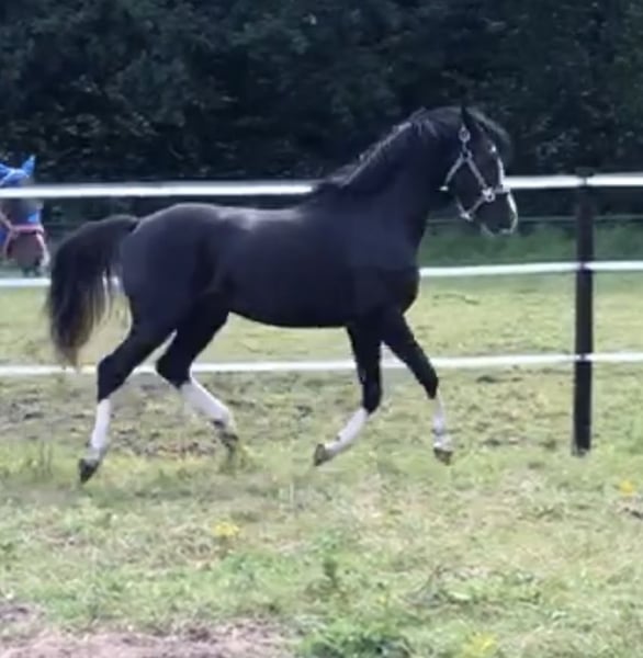 We are selling our 3-year-old gelding, a German riding pony Neverland x Campari W WE. Currently approximately 1.43 m (14.3 hh). He is lightly backed and has spent the summer back on pasture. Dream character and stunning appearance. Perfectly suited for children in the long term. Housed exclusively in a 5-star Deluxe environment. Comprehensive, very good TÜV report available, including neck and back. Genetically tested black (dark) coat. Complete tack and accessories available upon request.