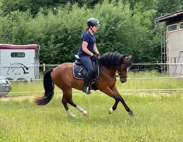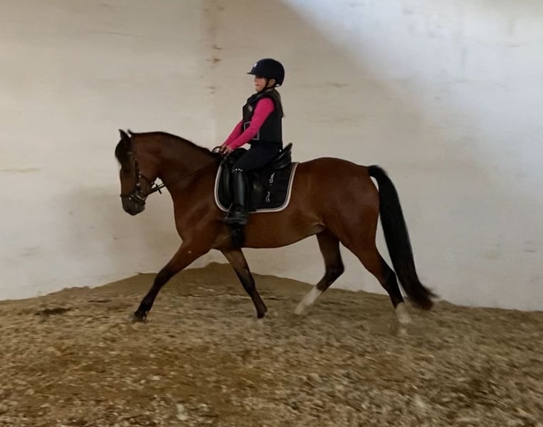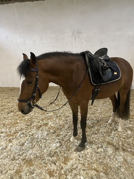 Dieser charmante und freundliche Wallach, der dem Menschen sehr zugewandt ist, sucht seine für immer Familie. Er wurde bei uns schonend und spielerisch angeritten und zeigte sich von Tag 1 an, sehr lieb und abgeklärt, er hat noch nie einen falschen Schritt gemacht und ist bei allem Neuem immer mit voller Begeisterung dabei. Dabei sehr unerschrocken und für sein Alter sehr sicher und entspannt. Er zeigt sich Straßenverkehrssicher LKW und Riesen Trecker ect bringen ihn nicht aus der Ruhe, und er kann schon von einer 9 jährigen kleinen Reiterin in allen Gangarten selbstständig geritten werden. Ein rundum tolles Pony. War bisher nie krank. Eine AKU liegt nicht vor, kann aber gerne gemacht werden. Zudem ist 2 spännig angefahren worden und hat ein Freispringchampionat gewonnen. Auswärts reiten und Training meistert er mit Bravour und ist nicht glotzig. Er deckt sehr gut ab, Reiterin auf den Bildern ist 173 cm. Er ist Barhuf und wächst in gemischter Herde im Offenstall auf und steht 24/7 auf Gras mit dauerhaft Heu, das verträgt er sehr gut. Bei ernstem Interesse bitte anrufen 015118980354 er wird nur verkauft da ich auf Dauer einfach zu groß für ihn bin um ihn turniertechnisch reiten zu können und ich schon seinen Bruder in der Größe besitze. Wird nur in gute und liebevolle Hände abgegeben. Zubehör wie Sattel und Trense können ggf miterworben werden. Da wir die Erfahrung gemacht haben, dass viele nur Videos sammeln und gar nicht schauen wie weit die Entfernung ist oder eigentlich ja ein Großpferd suchen und die Anzeige nicht komplett lesen, werden keine Videos versendet. Wer echtes Interesse hat, schaut sich dieses Superpony in echt an. Das Pony ist noch am Anfang seiner Ausbildung aber hat definitiv Potential um ein schleifensammler zu werden. Alleine durch seine Coolness, wird er sicher auf jedem Turnierplatz glänzen. Aber wer mit 3 einen hochgestochenen unreel ausgebildeten Strampler sucht, der ist hier fehl am Platz. Seine Ausbildung basiert auf ein gesunderhaltenes Reiten, wo Durchlässigkeit und feine Anlehnung und sicheres von A nach B kommen für Kinder und Erwachsene wichtiger ist, als die Beine hübsch zu schmeißen. Um Reittourismus zu vermeiden, werden 35 eur fürs zeigen, vorreiten und Probereiten verlangt.