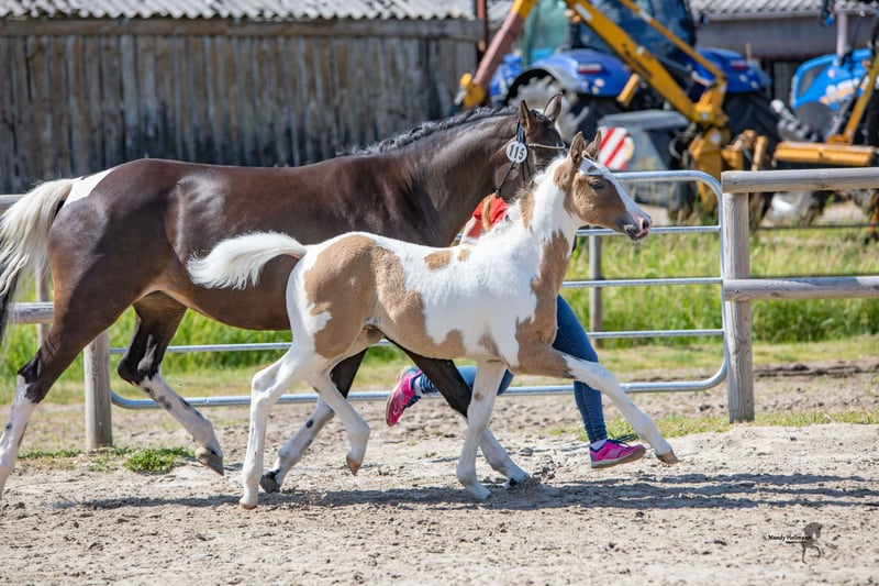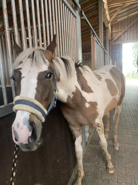 Z ciężkim sercem oferuję na sprzedaż mojego kucyka ogierka Deichtrommler NH, urodzonego w marcu 2022 roku. „Trommel” to niemiecki kuc, maść srokata. Przewiduje się, że osiągnie docelowy wzrost. Jest prowadzone na kantarze, zna jazdę w przyczepie i regularnie odwiedza kowala. Ponadto był regularnie odrobaczany i szczepiony. Trommel jest bardzo ciekawski i jak dotąd wykazuje się odwagą (plastikowe torby, traktory, kury, psy, muzyka itp. nie stanowią problemu). Dodatkowo, Trommel jest bardzo przytulaśny i szuka kontaktu z ludźmi. Pochodzi od ogiera Kastanienhof Donnertrommler (patrz ostatnie zdjęcie), który odnosi sukcesy w sporcie ujeżdżeniowym kuców. Ze strony matki pochodzi od Shootingstara, ogiera pintowego, który odniósł sukcesy w klasie M. Trommel dysponuje trzema bardzo dobrymi podstawowymi chodami i prawidłową budową ciała. Z pewnością będzie uroczy, nie tylko dzięki swojemu wyglądowi i ruchom, ale także dzięki swojemu charakterowi. Sprzedawany jest tylko do 5* domu. Więcej informacji, zdjęć oraz aktualnych filmów można uzyskać na życzenie. Miejsce przed ceną.