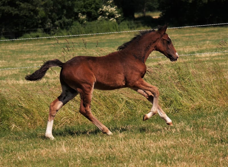 In vendita un castrone di tre anni, alto circa 1,49 m, di colore baio, figlio di Validos Grey l’Amour, nato da la cavalla statale Desert Rose, madre dei stalloni approvati Weidners Dream Date e Weidners Dark Knight, e sorella piena di Golden West NRW e mezza sorella di Diamond Touch NRW. Weidners Vision si distingue per il suo carattere eccezionale, unito a ottimi movimenti! Lo immagino sia nel dressage che nel tempo libero. Ha già acquisito molte nozioni di gestione, anche se non è ancora in lavoro. È abituato a essere spazzolato, condotto, alla ferratura, alle deworming, ecc. È cresciuto in un gruppo di cavalli misto e affettuoso.