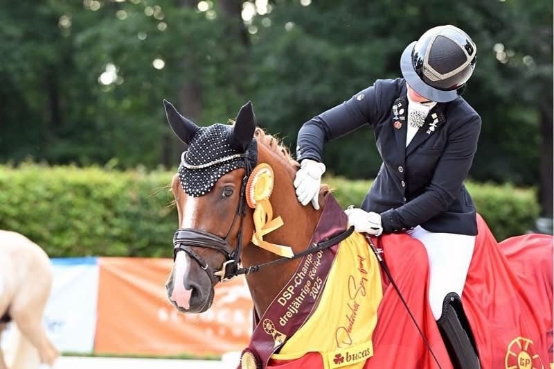 Deze geweldige rijponyhengst is zowel in de omgang als onder het zadel een droom! Met veel beweging en zeer veel rijdbaarheid is hij in de bak echt een blikvanger! Zijn staat van dienst laat geen wensen onvervuld; hij is Landskampioen en Zuid-Duits DSP-kampioen, evenals Bundeschampion van de 3-jarige rijponystuten en -hengsten in 2025. Wie op zoek is naar een betrouwbare rijpony, zal hier een echt juweel vinden! Zeer interessant voor het Bundeschampionat 2026 en zeker later een paard voor de M- en S-klasse!!! Een actuele gezondheidsverklaring met röntgenfoto’s, inclusief de ruggengraat, is aanwezig! Direct van de fokker.