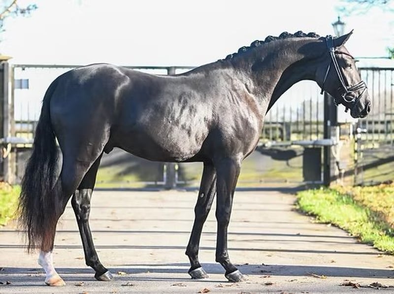 Here we have an absolute dream horse for sale; jet black, very elegant in every way, with fantastic movements and a character made of gold, our formerly award-winning stallion now gelding is truly a sight to behold. Standing tall and still growing (sired by FS Numero Uno—this is where his height comes from), this genuine Black Beauty is simply a joy to ride! Always honest with his rider, he is easy to handle and eager to please, wanting to do everything right. We look forward to serious inquiries.