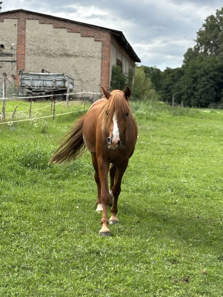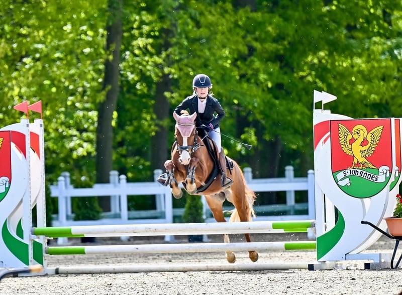 Sehr lieber und menschenbezogener 3 jähriger Wallach von Herzbube D WE aus einer Lestard von Leicester Mutter. Der junge Mann steht korrekt auf den Beinen und ist bei entsprechender Förderung vielseitig einsetzbar. Sein Vater bringt das Dressurblut über Herzkönig NRW und Casino Royale K WE mit. Seine Mutter ist eher der Springflummi und gibt eine schöne Vorderhandtechnik mit. Sein 5 jähriger Bruder von Quarterback’s Junior wurde 3 jährig ins Ausland verkauft und geht dort als ein solides, kopfklares Kinder- und Springpony. Genau das wünschen wir uns für diesen lieben Jungen ebenfalls:) Unser Heimi steht im kleineren Rahmen ca. 1,42 cm und wird auch definitiv im Ponymaaß bleiben;) Momentan steht er noch auf Koppel und darf noch etwas Ponykind sein. Als Fohlen wurde er mit 24 Punkten prämiert. Seit Ende September ist er kastriert. Das letzte Bild zeigt seinen 5 jährigen Halbbruder.