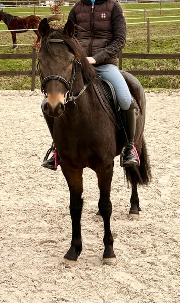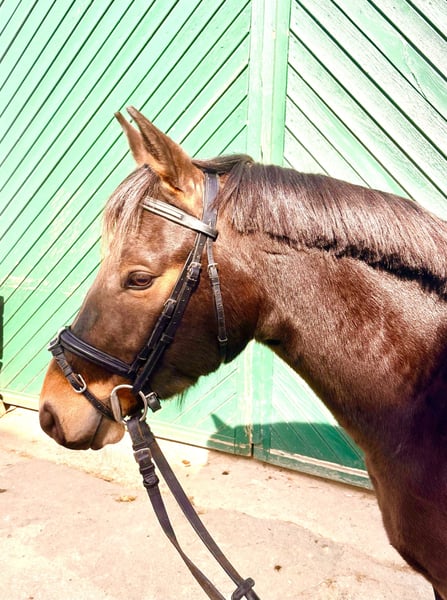 Zum Verkauf steht unser selbstgezogener, sehr typvoller, 4-jähriger Deutsches Reitpony Wallach mit einem aktuellen Stockmaß von ca. 1,35 m. Der Wallach überzeugt durch seine sehr gute Einstellung zur Arbeit, ist ausgesprochen brav im Umgang und zeigt sich unter dem Sattel unkompliziert und lernwillig. Er wird seit Anfang des Jahres behutsam angeritten und präsentiert sich dabei stets klar im Kopf und sehr kooperativ. Beim Freispringen zeigt er bereits jetzt viel Vermögen, Übersicht und eine sehr gute Technik. In einem Freispringwettbewerb belegte er kürzlich den 2. Platz und erhielt Noten von 8,2 für Vermögen und 8,4 für Technik. Neben seinem Talent am Sprung überzeugt er auch durch sehr gute Grundgangarten und eine ansprechende Bewegung, sodass er nicht nur im Springsport oder als Hunter geeignet ist, sondern vielseitig im Reitsport einsetzbar ist. Besonders hervorzuheben ist seine hochkarätige Abstammung. Er stammt ab von Quabar des Monceaux und aus einer leistungsstarken Mutterlinie über Dexter Leam Pondi, Corrado I und Diamant de Semilly. Die Mutterlinie ist sportlich sehr erfolgreich: Seine Großmutter Catness gewann 2021 die Deutschen Jugendmeisterschaften der Ponys (DJM) und platzierte sich außerdem unter den Top Ten der Pony-Europameisterschaften. Durch seine Einstellung, seine Qualität am Sprung, seine Bewegung und seine Abstammung ist er ein äußerst interessantes Nachwuchspony für den Kinder-Spring- bzw. Hunter-Sport, aber auch für andere Sparten des Reitsports. Bei ernsthaftem Interesse freuen wir uns über eine Nachricht. Wir wünschen uns für ihn einen Platz, an dem sein Talent erkannt und er entsprechend weiter ausgebildet und gefördert wird. Direkt vom Züchter.