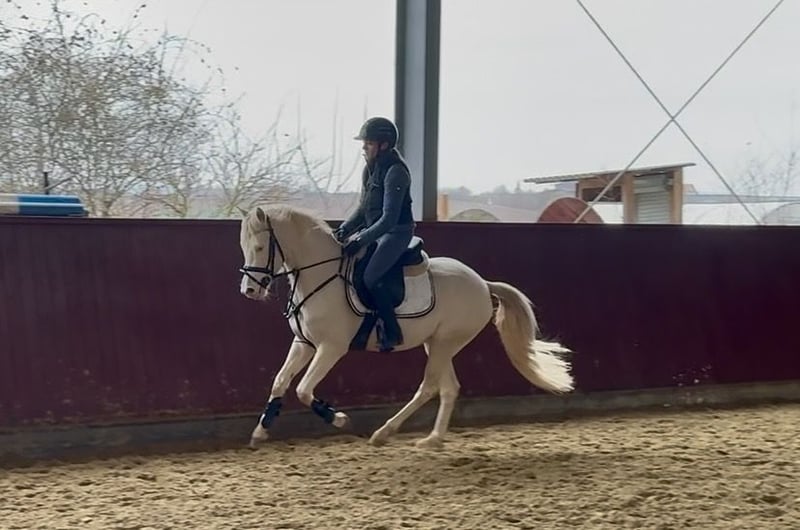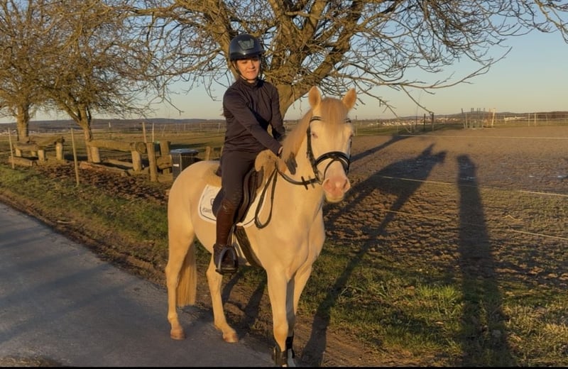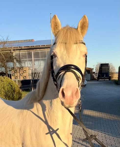 Zum Verkauf steht ein wunderschöner 4-jähriger Deutscher Reitponywallach in der seltenen Sonderfarbe Cremello. Er ist gut angeritten und zeigt sich unter dem Sattel brav, motiviert und lernwillig. Seine ersten Sprünge hat er bereits sehr gut gemeistert. Im Umgang ist er unkompliziert, freundlich und zeigt sich stets aufmerksam und kooperativ. Ein toller Allrounder mit viel Potenzial, der sich ideal zur weiteren Ausbildung nach eigenen Vorstellungen eignet. Aktuelle Röntgenbilder aus 01-26 sind vorhanden.