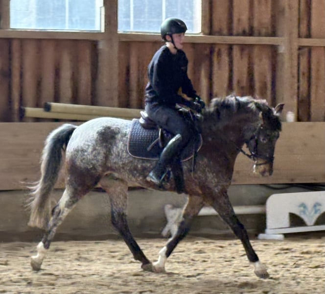 For sale: German Riding Pony gelding – born in 2022, height 147 cm This charming German Riding Pony gelding, born in 2022, impresses with his comfortable height of 147 cm. He is ideally suited for dressage and demonstrates a lot of talent and willingness to learn. With his friendly nature and solid basic training, he is an excellent choice for both advanced riders and ambitious young riders. He is very well ridden, easy to bring on the bit, and comfortable to sit. He is learning and progressing daily. Please feel free to contact me for more information or if you are interested. Viewing and trial rides available by appointment.
