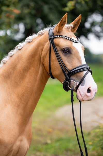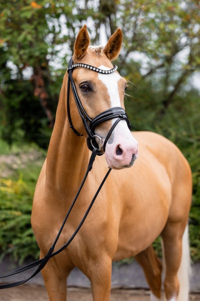 Future Children's Pony for Sale Our four-year-old pony gelding Capri (by Can Dance x Classic Dancer) is looking for his special person. Standing at 1.47 m, he has everything a modern riding pony needs: expression, type, and an absolutely lovable character. He has only been under saddle since summer, yet he is already super well-behaved and fearless, and has already placed in riding horse competitions. Capri is still at the beginning of his training but is incredibly reliable and motivated for his age. A pony that impresses not only with quality but also with his charming personality.