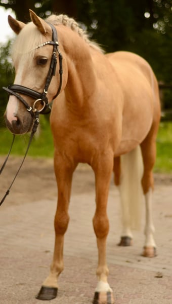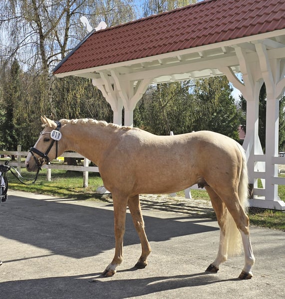 Dionis ist solide angeritten und wurde wegen seiner lieben Art auch schon im Gelände geritten. Er hat eine raumgreifenden Schritt und einen enorm schwungvollen Trab, der begeistert. Ein tolles Dressurpony der Extraklasse wächst da heran und der erste Turnierstart steht demnächst an. Erste kleine Sprünge haben wir auch schon gemacht. Gerne in sportlich fördernde Hände, da auch schon sein Vater von uns ist und Dionis als sein erster Sohn für uns etwas ganz besonderes ist. WAr bis 3 jährig in Hengstgruppe in Offenstallhaltung bei mir. Kennt also Box und Gruppenhaltung. Läuft noch barhuf