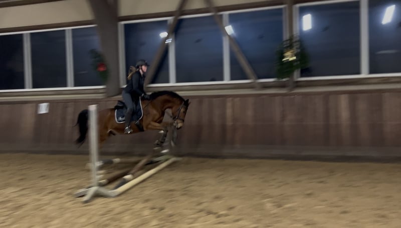 "Krümel" wurde im Oktober 2025 angeritten und ist seitdem sehr lieb und lernwillig. Seine Einstellung bringt uns jeden Tag wieder zum Staunen. In der Dressur befindet er sich auf Dressurpferde A Niveau, sodass man direkt auf Turnieren durch starten kann. Mit dem Springen haben wir auch begonnen. Dabei hat er besonders viel Spaß. Er springt schon mit sehr viel Übersicht. Ich könnte ihn mir auch sehr gut als Hunterpony vorstellen. Da ich aufgrund meines Studium nicht mehr soviel Zeit für ihn habe, suche ich jemanden, bei dem er die Nummer 1 ist. Ein TÜV ist bereits vorhanden.