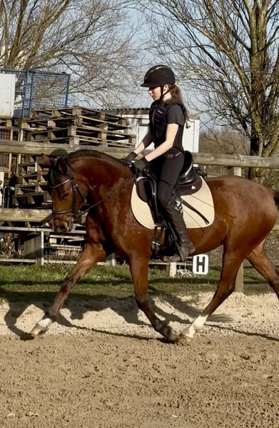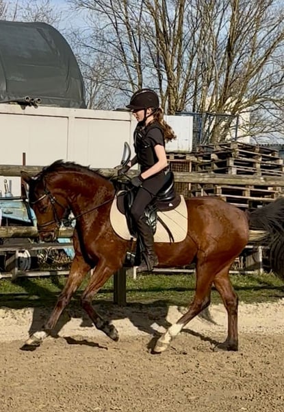 For sale: a promising German Riding Pony gelding, born in 2021. The perfect partner for those seeking a reliable and talented horse for competitive riding. He is easy to ride, suitable even for children to sit on and follow after. His appearance and temperament make him appealing both to ambitious leisure riders and for show jumping or dressage competitions. He has a solid, age-appropriate basic training in dressage and small jumps, and his eagerness to learn sets him apart. TÜV valid until 2025, including back x-ray available. Videos of him being ridden with a child can be sent upon request (dressage + jumping). He is familiar with road traffic, can be ridden without a saddle, and more.