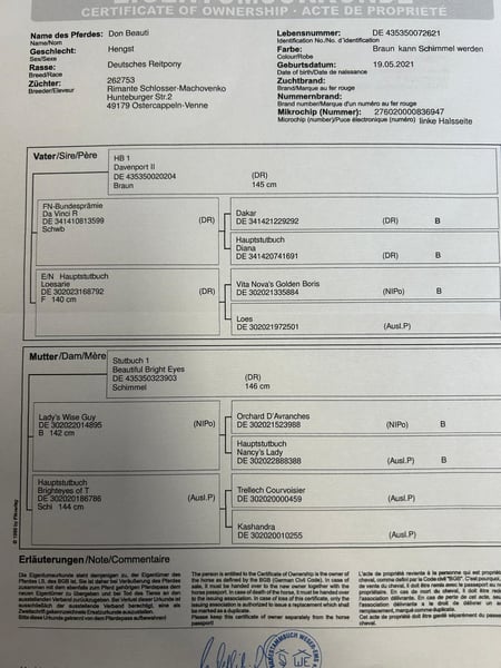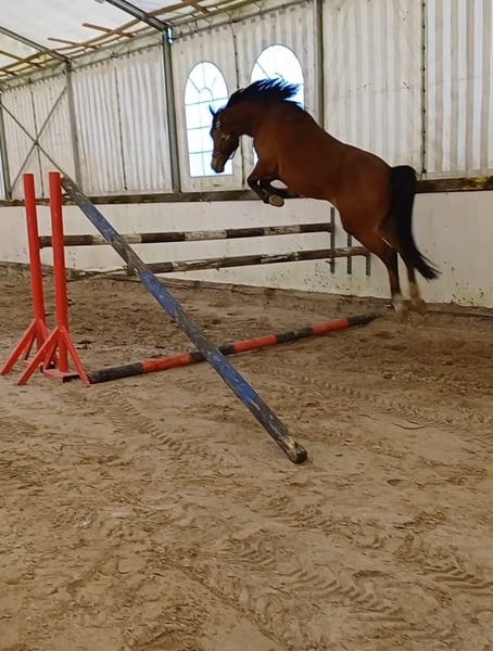 Zum Verkauf steht unser vielversprechendes Deutsches Reitpony Don Beauti, geboren am 19.05.2021, mit einem Stockmaß von ca. 146 cm – ein echtes Nachwuchstalent für ambitionierte Reiter. 🐴 Abstammung & Eckdaten: Name: Don Beauti Geboren: 19.05.2021 Stockmaß: ca. 146 cm Abstammung: Davenport II x Lady’s Wise Guy – leistungsstarke und bewährte Blutlinien 🌟 Ausbildung & Eigenschaften: Bereits geritten Vielseitig einsetzbar – sowohl für Dressur als auch Springen geeignet Gute Grundgangarten mit viel Takt und Elastizität Gutes Springvermögen und viel Übersicht am Sprung Brav im Umgang, freundlich und lernwillig Schmiede- und verladefromm 🩺 Gesundheit & Haltung: Regelmäßig entwurmt und geimpft Zähne gemacht Aktuell in gemischter Offenstallhaltung, kennt aber auch Boxenhaltung Barhuf Don Beauti bringt alles mit, was sich ein ambitionierter Reiter für die Zukunft wünscht: Qualität, Einstellung und Abstammung. Mit der richtigen Förderung kann er sich zu einem echten Champion entwickeln.