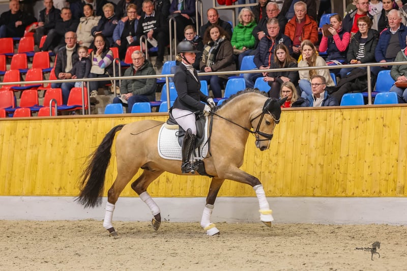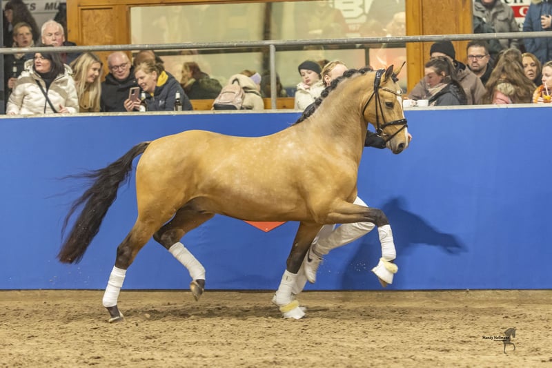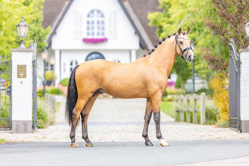 A very confident and exceptionally well-behaved gelding in XXL size. This pony is an absolute dream, not only in appearance but also in his work ethic and willingness to perform, always loyal to his rider. Pluggi was awarded premium stallion status at his licensing and has already been placed in Equestrian and Dressage Horse A classes. His sire, Diamonts Showtime, was the top-priced stallion at his licensing and is now a successful FEI pony. His dam, elite mare Bente, has already produced two licensed sons and a state premium daughter. Additionally, her offspring have achieved success in sport. Here is a characterful buddy with quality in XXL size.