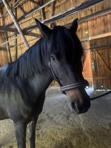 Schweren Herzens verkaufe ich aus persönlichen, privaten Gründen meinen 5-jährigen Deutschen Reitpony-Wallach „Bismarck“ mit einem Stockmaß von ca. 150 cm. Er wurde im letzten Jahr schonend angeritten, beherrscht alle drei Grundgangarten sicher und hat bereits erste kleine Sprünge brav gemeistert. Für sein junges Alter ist er unerschrocken, sehr lieb und im Umgang wie unter dem Sattel unkompliziert. Altersbedingt muss er natürlich noch weiter lernen, zeigt sich dabei aber stets motiviert und kooperativ. Bismarck geht allein sowie in der Gruppe zuverlässig ins Gelände und ist auch dort sehr brav. Er ist als Turnierpferd eingetragen, durchgeimpft und somit grundsätzlich auch für den Turniersport geeignet. Gesundheit: Er ist Ekzemer, kommt mit konsequenter Nutzung seiner Ekzemerdecke jedoch gut durch den Sommer. Haltung: Aktuell steht er im Offenstall zusammen mit zwei weiteren Wallachen. Diese Haltungsform wünsche ich mir auch weiterhin für ihn, da er nichts anderes kennt. Zubehör inklusive: - angepasster Kieffer Vielseitigkeitssattel - Trense - Ekzemerdecke Ein tolles, junges Reitpony mit gutem Charakter, ideal für Freizeit, Gelände und den weiteren sportlichen Aufbau.