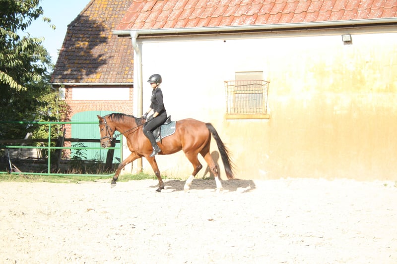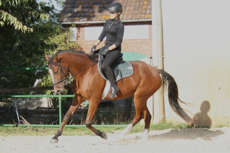 Na een zorgeloze opfok en zorgvuldige opleiding is het tijd voor Dantes Inferno om een nieuw thuis te vinden. Deze vierjarige ruin valt vooral op door zijn unieke karakter. Hij is nieuwsgierig, oplettend en zeer mensgericht. Zijn onwankelbare vertrouwen in de mensen om hem heen maakt het werken met Dantes Inferno tot een groot plezier. Dit geldt zowel voor het werk onder de ruiter als aan de hand. Dantes Inferno heeft een duidelijk gereguleerde en ijverige stap, krachtige drafbewegingen en een ritmisch galop. Hij voert kleine sprongetjes gemotiveerd en met de nodige voorzichtigheid uit. In het terrein is hij zowel samen met andere paarden als alleen rustig en betrouwbaar. Dantes Inferno is uitsluitend door amateurruiters gereden. Geboorte, opfok en opleiding komen uit één hand. Ook langere rijpauzes vormen geen probleem bij voldoende beweging. Zijn moeder is op 25-jarige leeftijd nog steeds in topvorm en wordt regelmatig gereden. Wie op zoek is naar een betrouwbare vrijetijdspartner kan gelukkig worden met Dantes Inferno. Video's zijn op aanvraag beschikbaar via WhatsApp.