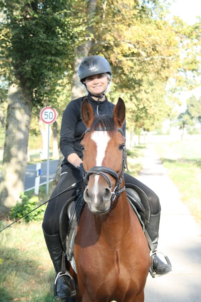 Po beztroskiej hodowli i ostrożnym szkoleniu nadszedł czas, aby Dantes Inferno znalazł nowy dom. Ten czteroletni wałach wyróżnia się przede wszystkim swoim wyjątkowym charakterem. Jest ciekawski, uważny i bardzo przywiązany do ludzi. Jego niezachwiana wiara w otaczających go ludzi sprawia, że praca z Dantes Inferno to wielka przyjemność. Dotyczy to zarówno pracy pod jeźdźcem, jak i na ręku. Dantes Inferno ma wyraźnie uregulowany i pracowity krok, energiczne ruchy w stępie oraz rytmiczny galop. Z zapałem i konieczną ostrożnością pokonuje małe przeszkody. W terenie jest zarówno w towarzystwie innych koni, jak i sam spokojny i niezawodny. Dantes Inferno był i jest jeżdżony wyłącznie przez amatorskich jeźdźców. Urodzenie, hodowla i szkolenie z jednej ręki. Nawet dłuższe przerwy w jeździe nie stanowią problemu przy odpowiedniej ilości ruchu. Jego matka w wieku 25 lat wciąż jest w doskonałej formie i regularnie jest jeżdżona. Kto szuka niezawodnego partnera do rekreacji, może być szczęśliwy z Dantes Inferno. Filmy chętnie na życzenie przez WhatsApp.