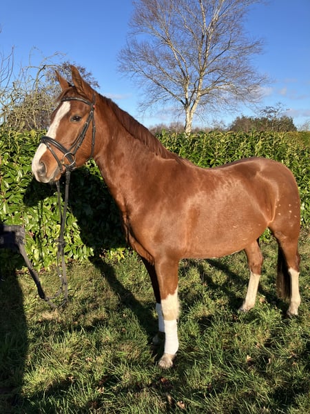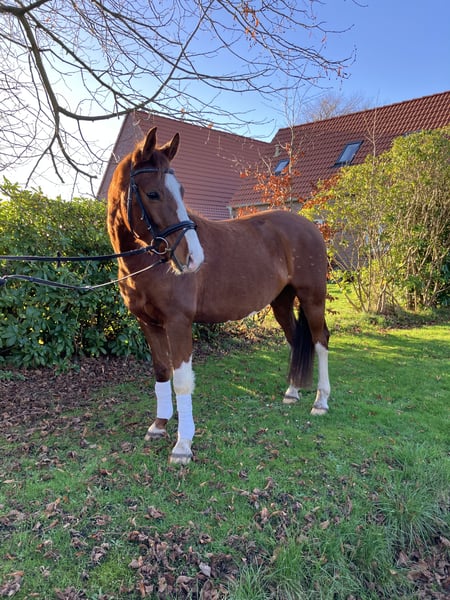 Zum Verkauf steht ein fünfjähriger Wallach aus unserer eigenen Zucht. Mit einem Stockmaß von ca. 1,53 m ist er ideal für kleinere Erwachsene sowie für Kinder geeignet. Er ist seit August unter dem Sattel und zeigt sich dabei sehr lernwillig und brav. Dressurmäßig ist er gut angeritten und macht seine Arbeit stets zuverlässig und motiviert. Im Umgang ist er absolut artig, sehr menschenbezogen und verschmust – ein wirklich lieber und kopfklarer Wallach. Auch das Voltigieren haben wir bereits ausprobiert, was er gelassen und unkompliziert gemeistert hat. Im Freispringen zeigt er ebenfalls gutes Vermögen und eine schöne Übersicht, sodass er durchaus doppelt veranlagt ist. Unter dem Reiter wurde das Springen bisher noch nicht weiter gefördert. Ein unkompliziertes, freundliches Pony mit solidem Ausbildungsstand und viel Potenzial für die weitere Förderung in liebevolle Hände abzugeben.