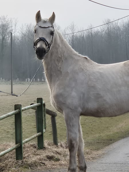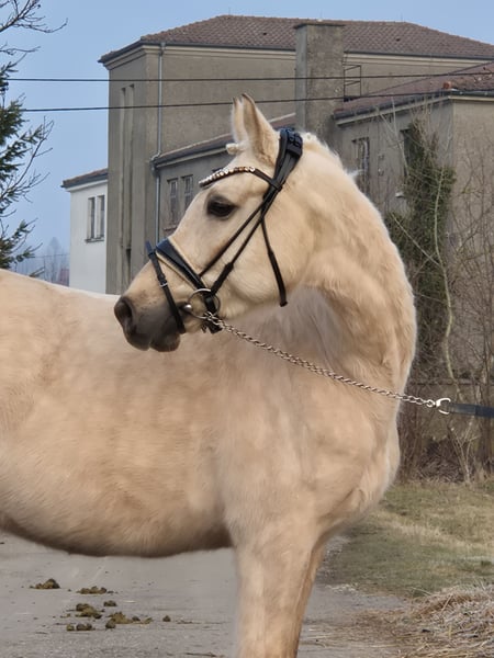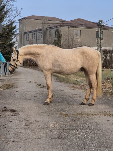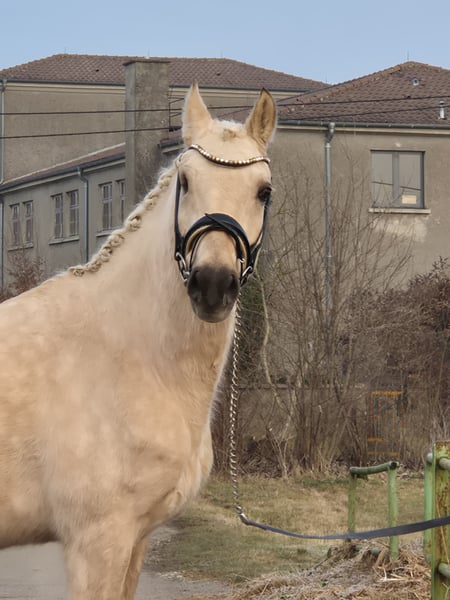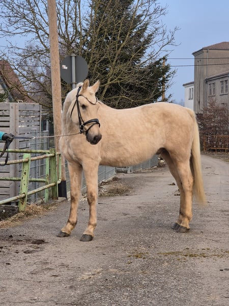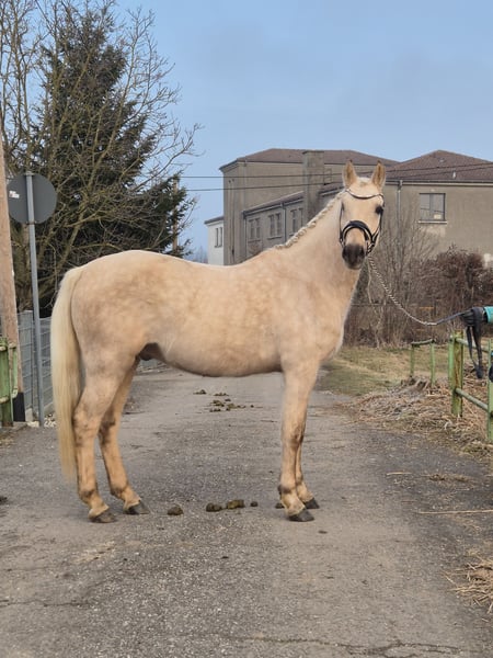 Zum Verkauf steht ein wunderschöner Deutsches Reitpony-Wallach, geboren im Jahr 2021. Mit seinem eleganten Palomino-Fell und einem Stockmaß von ca. 155 cm ist er ein echter Blickfang. Der junge Wallach überzeugt durch sein freundliches Wesen und seine gute Grundausbildung. Seine harmonische Abstammung und sein ausgeglichener Charakter machen ihn zu einem vielversprechenden Partner für ambitionierte Nachwuchsreiter genauso auf für den erfahrenen Reiter, die Wert auf Qualität und Charakter legen. Ein vielseitiges Pony, das sowohl im Dressurviereck als auch in der Freizeit eine gute Figur macht. Im Springen wurde er noch nicht gefordert, da er erst im Herbst 25 angeritten wurde. Schorsch sucht einen Platz für immer, da er sich durch einen Koppelunfall, der ihm sein rechtes Auge gekostet hat, nicht ständig auf neue Menschen und Umgebungen einstellen kann. Sein kleines Manko steht ihm bei der täglichen Arbeit in keinster Weise im Wege. Er meistert alle Aufgeben, die ihm gestellt werden mit Bravour und ist stets motiviert. Sicherlich ist er, aufgrund seines Alters und der kurzen Zeit unter dem Sattel noch nicht für den reinen Anfänger geschaffen. Um dem Reittourismus entgegen zu wirken und dem jungen Pferd es nicht allzu schwer zu machen, erlauben wir uns für das Probereiten 50,- zu verlangen, welche natürlich bei Kaufabschluss angerechnet werden. Bei Interesse freuen wir uns auf Ihre Kontaktaufnahme ab 17:00h uner der Tel. Nr. 0172-2471946