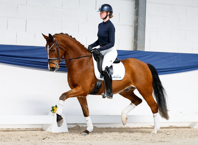 In unserer Kollektion stehen streng selektierte Reitponys f�r alle Anspr�che: Ausbildungs-, Zucht- und Kinderponys Hier gelangen Sie zur Gesamtkollektion: https://ponyforum.auction Erfolge: in Holland platziert in L1 und L2 (vergleichbar mit DR A* und A** in Deutschland) Mit dem groß aufgemachten Ferris präsentiert sich hier ein hervorragend ausbalanciertes und schon mit viel Tragkraft versehenes Nachwuchspony, das einen beispielhaften Arbeitswillen präsentiert! Ihn bringt nichts aus der Ruhe, auch wenn mal übermotivierte Ponyfreunde losbuckeln oder vor der Halle ein Trecker rangiert – das macht ihn alles überhaupt nicht wild. Diesen Eindruck bestätigen auch seine top Platzierungsergebnisse, die er in Jungpferdeprüfungen in Holland bereits sammelte (Originalname Steerwoldes Caelum). Dressurkenner geraten bei seinem Bewegungsablauf ins Schwärmen - diesen Wallach kann man sich schon jetzt im großen Viereck vorstellen, er bringt alle Möglichkeiten mit. Ein gut zu sitzendes und hochanständiges XL-Pony, das im täglichen Handling eigentlich auch immer nur Bonuspunkte sammelt. Lieb, ausgeglichen, unkompliziert und immer freundlich zu jedem, der an seiner Box anhält.