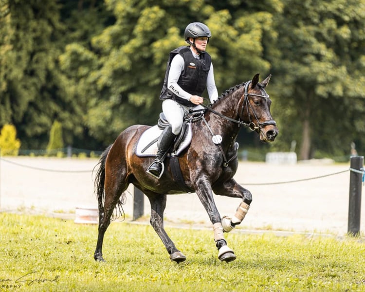 Gin Tonic si distingue per il suo fascino assoluto, la sua voglia di lavorare e le ottime qualità per il salto ostacoli e il concorso completo. Addestrato delicatamente a 4 anni, ha subito ottenuto ottimi risultati nelle prove di dressage e di cavalli da lavoro. Possiede un passo molto ampio, un trotto fluido e un galoppo di grande statura, ben equilibrato. Da quest'anno ha potuto sviluppare ulteriormente il suo talento nel salto. Fin dall'inizio ha impressionato per la sua chiarezza mentale, il galoppo ritmico e la sua ottima maneggevolezza. Ha vinto prove di salto ostacoli e di cross country A** con punteggi fino a 8,7, contro cavalli di grossa taglia. A giugno è stato nominato campione regionale dei pony da cross di 5 e 6 anni di Sassonia-Thüringen. Inoltre, a luglio ha conquistato il titolo di DSP-Champion dei pony da cross. Infine, si è qualificato per il Bundeschampionat a Warendorf. Gin Tonic si presenta sempre coraggioso e dal carattere forte. Durante l'allenamento con i giovani cavalieri, ha trasmesso un senso di sicurezza. Affronta il terreno con affidabilità e calma sia da solo che in gruppo. Viene tenuto in paddock aperto con una mandria mista, è socievole e giocoso, ma sempre amichevole. Durante l'inverno, corre senza ferrature, mentre durante la stagione delle gare indossa le ferrature. È regolarmente vaccinato, dewormed e sottoposto a cura dentale. Non si tratta di una vendita urgente. Gin Tonic viene affidato esclusivamente a una famiglia con standard di eccellenza. Per ulteriori informazioni, non esitate a contattarci al numero 0174 2116959.