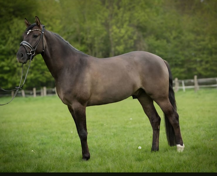 On behalf of a loving family, a wonderful XXL pony for all ages. Six years old, 154 cm tall, and an absolute buddy type. This pony has three very good basic gaits, with the walk being particularly outstanding. It has been ridden at dressage levels A/L and is also capable of jumping an E-course (though jumping has been less emphasized). Successfully passed riding exams in dressage and jumping. Absolutely well-behaved and reliable in all situations — whether handling, at the farrier, with the veterinarian, loading onto the trailer, riding in the indoor arena or on the outdoor riding area.