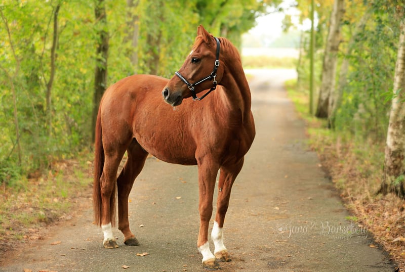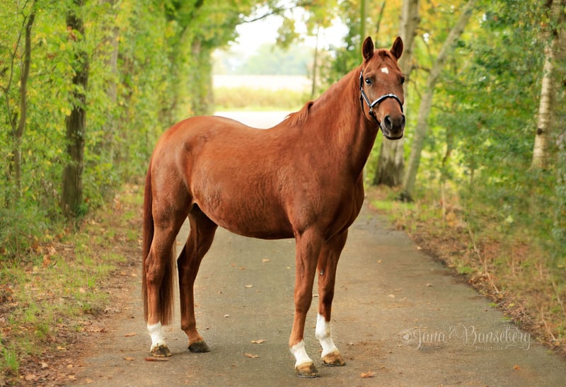 Topaz Imperial Zum Verkauf steht unser aus dem Maß gewachsener DRP Wallach Topaz mit 1,52m. Er hat eine tolle Linie und Mutterstamm. Er ist von 2019. Aufgrund eigener gesundheitlicher Probleme müssen wir uns schweren Herzens verkleinern und werden ihm auf Dauer nicht mehr gerecht. Er ist sehr anhänglich und menschenbezogen. Seinem Menschen folgt er blind überallhin, brummelt und wiehert wenn er einen sieht. Er ist sehr verschmust und und hat einfach einen herzensguten Charakter. Er ist sehr intelligent, lernt schnell und möchte es einem auch recht machen. Er möchte zwar wirklich was tun, ist dabei aber so das man ihn wochenlang stehen lassen kann und dann direkt los reiten. Generell ist er absolut nervenstark und unerschrocken, er ist geländesicher und ihn bringt kaum was aus der Ruhe. An seiner Ausbildung haben wir nie gespart. Er wurde sehr schonen zunächst unterm Sattel in der Dressur ausgebildet und hat ein paar Sprünge mit Reiter absolviert. Danach haben wir ihn beim Profi (Europameisterin) einfahren lassen. Er wurde bei uns regelmäßig einspännig im Gelände gefahren. Und ist da immer ein Traum und absolut souverän gewesen. Wir haben ihn letztes Jahr dann erneut weiterbilden lassen im Beritt, mit Augenmerk auf die Dressur. Er kennt es auch schwächere Reiter zu tragen und Kinder. Auch da möchte er alles richtig machen. Bekam jedoch bei uns danach auch immer regelmäßig Korrekturberitt. Er kennt die Haltung im Stall sowie Offenstall. Er steht bei uns in einer gemischten Herde, er ist eher ranghoch, ordnet sich aber auch unter. Er ist eher leichtfuttrig, gutes Heu reicht völlig. Er kennt Beschlag und Barhuf und hat gute harte Hufe. Beim Schmied ist er sehr brav. Verladefromm ist er auch, wir haben immer regelmäßig mit ihm Hängertraining gemacht. Er ist brav an der Longe und kennt auch die Doppellonge. Schrecktraining haben wir auch im eigenen Parcours mit ihm gemacht. Bei uns steht er ganzjährig im Offenstall und ist da sehr genügsam. Er war nie krank, hat den TA nur zum Impfen gesehen. Bei Bedarf kann natürlich eine AKU gemacht werden. Er ist aufs Fotografieren Trainiert und guckt auf Handzeichen, er durfte schon für ein paar Projekte Modell stehen. Aktuelle Videos unterm Sattel können auf Anfrage geschickt werden. Er kann gern unverbindlich angeschaut und kennen gelernt werden, wir wünschen uns für ihn ein schönes neues Zuhause. Per Telefon: +49 152 53765924 Per Whats App: +49 151 10209144