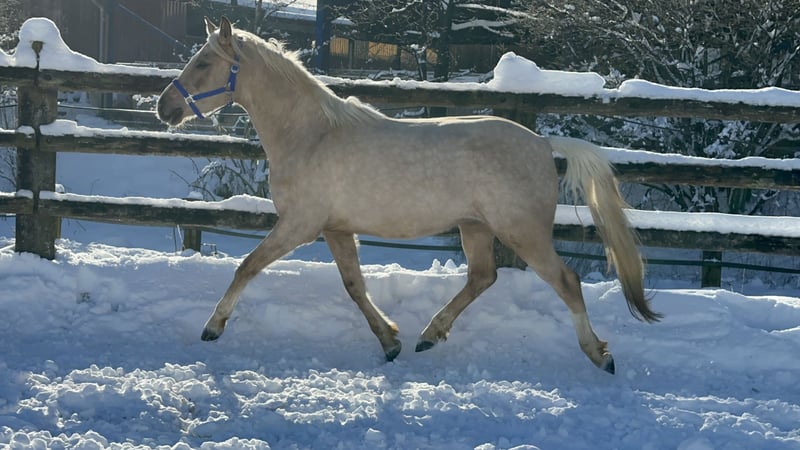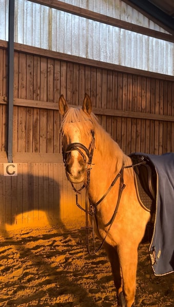With a heavy heart, I am seeking a new, loving home for my sensitive, beautiful Palomino gelding. ✨ He is truly a horse from the heart – stunningly handsome, gentle in character, affectionate, and always eager to please his handler. • German Riding Pony XL, gelding, born in 2019 • Approximately 15.2 hh, Palomino, full papers • Barefoot, healthy, teeth recently checked, regularly vaccinated (tetanus, influenza, herpes), physiotherapy & osteopathy treatments • Raised in an appropriate young horse herd, familiar with open stable, 24/7 turnout, and paddock box with pasture access • Well-behaved, very people-oriented, and socially compatible He was lightly backed in May 2024, then given a break over the summer, and has been ridden regularly three times a week since October 2024. He demonstrates excellent ground manners, enjoys jumping, and simply has incredible quality and charm. As he is sensitive and still in training, I am looking for an experienced, patient person who will continue to support him and give him time to develop. Not suitable for beginners or children. A combination of an experienced mother and a well-ridden child, or an experienced teenager with appropriate riding skills, could also work well. Sale only to private individuals in absolutely good, caring hands with proper, species-appropriate management. No video collectors – serious buyers are welcome to meet him. Trial rides by appointment (30 €, to be deducted from the purchase price).