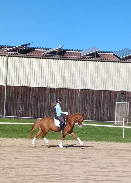 Leider ist die Reiterin zu groß geworden. Deshalb möchten wir uns von unserem Herzi trennen. Er ist 5jährig zu uns gekommen, wurde dann dressurmäßig gefördert und hat mit einem 11 jährigen Mädchen A Dressur gewonnen. Heute beherrscht er die Lektionen der Klasse L. Seine Stärke und Leidenschaft liegt jedoch beim Springen. Hier hat er sehr viel Vermögen, welches aber noch nicht weiter gefördert und ausgeschöpft wurde (Training 1,30m gesprungen). Herzi ist aktuell mit seiner 13 jährigen Reiterin im Regionalkader Pony Springen. Er ist leicht zu reiten und völlig unkompliziert im Umgang. Ein aktueller TÜV April 2026 inkl. Rücken liegt o.B. vor. Für weitere Informationen gerne per WhatsApp oder Anruf 01621792056