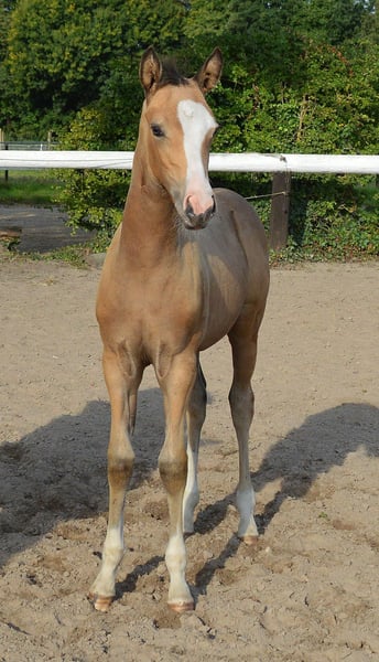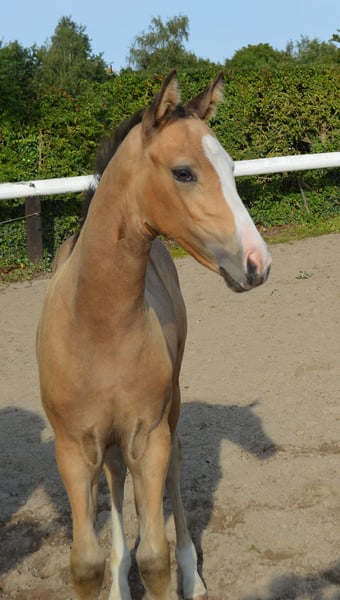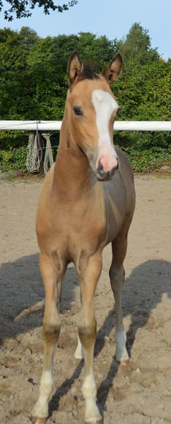 Super schickes und freundliches Stutfohlen in herrlich auffallender Optik. Cini Mini SF von Champion de Luxe ( zu dem man wohl nichts mehr sagen muss) aus der Golden de Luxe B ( Golden Sunshine) von Dance de Luxe aus der Staatsprämienstute Going West B von Golden Dancer. Aus der Mutterlinie sind schon einige hocherfolgreiche Sportponys raus. Cini Mini ist Halfterführig und gibt anständig alle 4 Füße, zu dem kennt sie bereits das Anhänger fahren und lässt sich problemlos überall anfassen. Sie war bereits im zarten Alter von 4 Wochen erfolgreich auf einer Fohlenschau unterwegs und erhielt dort die begehrte Prämienplakette. Sie wird nur in sehr gute Hände abgegeben wo bereits mindestens ein gleichaltriger Kumpel vorhanden ist. Cini ist am 1.6 geboren und wird sicher im Maß bleiben und ist für Zucht und Sport gleichermaßen interessant. Besuchen jederzeit möglich