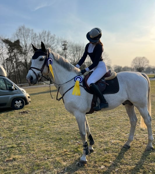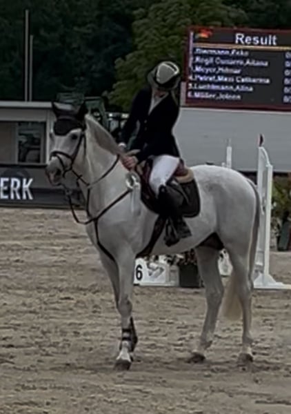 Zum Verkauf steht unser Bildschöner Colestros (von Colestus x No Limit) ein 16-jähriger, gekörter Deutscher Sportpferde Hengst mit einem Stockmaß von ca. 165 cm. Unser „Calle“ überzeugt nicht nur durch seine beeindruckende sportliche Laufbahn, sondern vor allem durch seinen außergewöhnlich lieben Charakter. Er ist S*-siegreich, war S** vorgestellt, nahm Erfolgreich in Lanaken an der WM der jungen Pferde teil, war beim Bundeschampionat platziert und konnte im letzten Jahr mehrfach L- und M-Siege sowie M**-Platzierungen unter einer Juniorin verbuchen. Im täglichen Umgang ist Calle absolut brav, zuverlässig und nervenstark – egal ob beim Reiten, in der Box oder auf dem Paddock. Er zeigt sich so gut wie nie hengstig und ist selbst mit kleinen Kindern äußerst lieb und geduldig. Ebenfalls geht er sowohl alleine als auch in der Gruppe, mit wie auch ohne Sattel ins Gelände. Trotz seiner Hengsteigenschaft ist er unkompliziert, wobei ein kleines Maß an Erfahrung im Umgang mit Hengsten natürlich von Vorteil ist. Unter dem Sattel ist er ein echtes Verlasspferd: brav, sicher und ehrlich, sodass er sich ideal als Einsteiger-, Kinder-/Jugend- oder Umsteigerpferd eignet. Am Sprung ist er nie guckig und bringt seinen Reiter wirklich immer sicher auf die andere Seite. Seine Kinderliebe und Gelassenheit machen ihn zu etwas ganz Besonderem. Da wir für Calle nun einen guten Endplatz suchen, wünschen wir uns ein Zuhause, in dem er aus dem höheren Sport entlastet wird und seine Qualitäten in ruhigerem Rahmen weiterhin zeigen darf. Beispielsweise als Lehrmeister, Amateurpferd oder auch als Freizeitpferd mit oder ohne kleine Turnierambitionen, da er im alltäglichen Training durch seine tolle rittigkeit immer wieder Freude bereitet. Ein guter TÜV inklusive Röntgenbildern liegt vor. Dies ist kein Notverkauf! Wir geben unseren Calle nur in allerbeste Hände ab. Ein Ausnahmehengst mit großem Herz, sportlicher Qualität und bestem Charakter, eben ein Pferd, auf das man sich jederzeit verlassen kann. Anfragen bitte direkt unter 01629803866