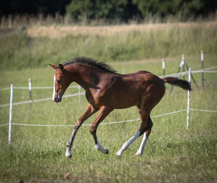 On behalf of: A beautiful, colorful colt by Chubakko (Conner x Colman / Beerbaum Stables) out of our Happy Hour (Quadrigus M x Almherr Z). Already showcasing impressive movement and a spacious, uphill canter. Always friendly and curious towards people. Easy to handle. Grows up with us in a natural herd environment and is halter-trained until weaning in October/November. Regularly dewormed and presented to the farrier. Rated as a premium foal with 42.5 points. Chubakko impresses across the board with his numerous awarded premium foals, which could not be more typy. His distinctly sport-oriented progeny feature large, expressive lines, elastic movements, significant scope, and a correct conformation. In 2020, Chubakko notably produced the winning foal of the third Holstein Foal Championship in Poland. His offspring also excel under saddle and in jumping, demonstrating very good movement, reflexes, combined with talent, attitude, rideability, and excellent character traits. The dam, Happy Hour, is by Quadrigus M, who was the top scorer with a perfect 10 at the South German licensing and achieved numerous wins and placings up to the advanced level in show jumping. The mare was trained by amateurs and competed up to L-level in both jumping and dressage. A viewing can be arranged at any time by appointment. Location: 92714 Pleystein.