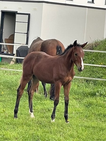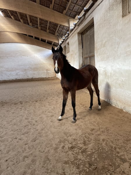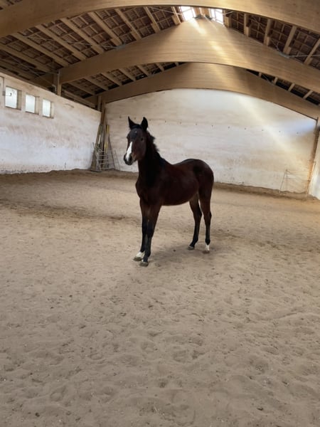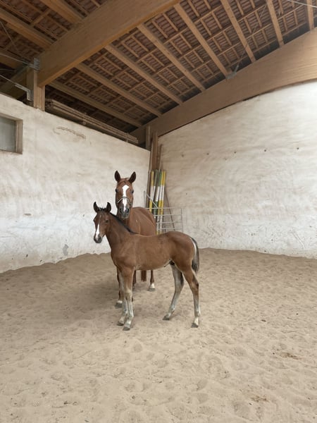 Unser lieber DSP Hengstjährling aus 4/25 heißt Sir Henry und stammt ab von Simonetti x Pilotek. Es handelt sich um ein sehr stattliches Fohlen mit stabilem Fundament und viel Aufriss. Er bewegt sich mit guten Grundgangarten (kein Lampenaustreter, aber reell) und besticht va mit seinem tollen Charakter. Ausgeglichen und sehr menschenbezogen, ist er der Liebling meiner Kinder. Abstammungsgemäß beste Voraussetzungen für die Vielseitigkeit, der Vollbruder steht bereits in einem renommierten VS Stall und zeigt sich beim anreiten als sehr unkompliziert. Alle unsere Fohlen wachsen artgerecht auf, sind aus leistungsgeprüften Linien und beherrschen das Fohlen ABC. Natürlich regelmäßig entwurmt und dem Schmied vorgestellt. Könnte zur weiteren Aufzucht auch bleiben, aber nur als Wallach. Kastrationstermin ist der 27.4., danach wird er für 5500,-€ verkauft oder geht ab 9.5. auf die Sommerweide. Gerne auch Kontakt über 0 1 7 7 8 9 8 5 7 6 1