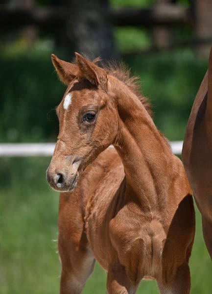 Jährlingshengst, geboren 2025, gezogen aus Bowmore X Va Bene, mit sportlicher Aufmachung und klarem Hengsttyp. Besonders hervorzuheben ist das harmonische Kopf-Hals-Verhältnis und seine insgesamt athletische Erscheinung. Aufwachsend mit gleichaltrigen Hengsten, zeigt er sich im täglichen Umgang neugierig und wach, dabei mit einem eher aktiven Temperament. In der Bewegung präsentiert er sich bergauf und dynamisch, ohne dabei übertrieben oder hektisch zu wirken – ein sportlich aufgemachtes Pferd mit guter Balance für sein Alter. Der Hengst wurde als Fohlen prämiert. Aufgrund des Alters wird das Pferd ausschließlich in erfahrene und fördernde Hände abgegeben. Wir bitten um Verständnis, dass reine Preisanfragen oder Verhandlungsfragen nicht beantwortet werden, da es sich um ein Lebewesen handelt und uns ein passendes Zuhause wichtiger ist als ein schneller Verkauf. Bei ernsthaftem Interesse freuen wir uns über eine Kontaktaufnahmen, beantworten gerne weitere Fragen und stellen zusätzliches Bild- und Videomaterial zur Verfügung. Eine kurze Vorstellung der eigenen Person hilft uns dabei, besser einzuschätzen, ob Pferd und Mensch gut zusammenpassen. Anfragen gerne auch per WhatsApp unter +4915560581906