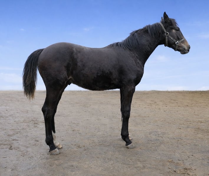 Stylish dressage stallion with excellent talent and outstanding pedigree. Born on May 5th, 2025, he is already accustomed to being tied, led, groomed, and hoof care. He has also been transported in a trailer, during which he proved to be very well-behaved. Currently, he lives in a small stallion herd in an open stable. Sundance is very gentle in handling and impresses with his beautiful basic gaits. Correct conformation, proper legs, a lovely coat, and a balanced temperament. If purchased, he is welcome to remain with us in the stallion herd (at standard boarding fee). Feel free to contact me if you would like to meet him or have any questions. *The background of the photos has been edited.
