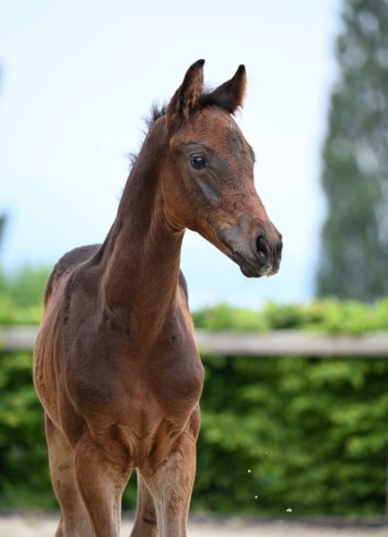 Großrahmiger Jährlingshengst von Comme Cavelle X Lasino, geboren 2025, mit zu erwartendem Endmaß im gehobenen Bereich. Langbeinig, mit zartem, ausdrucksstarkem „Hechtkopf“ ausgestattet, bringt er viel Präsenz und Übersicht mit. Er wächst mit gleichaltrigen Hengsten und einem älteren Wallach auf und zeigt sich dort mit klarem, selbstbewusstem Auftreten („Chef-Typ“), dabei jedoch stets korrekt im Verhalten und freundlich im Umgang mit dem Menschen. Seiner Abstammung entsprechend verfügt er über eine springbetonte Bewegungsanlage mit viel Galopp. Gleichzeitig zeigt er einen elastischen Trab, sowie einen ruhigen, gelassenen Schritt. Ein spannendes Nachwuchspferd für den Springsport, mit Potenzial für die Zucht. Der Hengst wurde als Fohlen prämiert. Aufgrund des Alters wird das Pferd ausschließlich in erfahrene und fördernde Hände abgegeben. Wir bitten um Verständnis, dass reine Preisanfragen oder Verhandlungsfragen nicht beantwortet werden, da es sich um ein Lebewesen handelt und uns ein passendes Zuhause wichtiger ist als ein schneller Verkauf. Bei ernsthaftem Interesse freuen wir uns über eine Kontaktaufnahmen, beantworten gerne weitere Fragen und stellen zusätzliches Bild- und Videomaterial zur Verfügung. Eine kurze Vorstellung der eigenen Person hilft uns dabei, besser einzuschätzen, ob Pferd und Mensch gut zusammenpassen. Anfragen gerne auch per WhatsApp unter +4915560581906