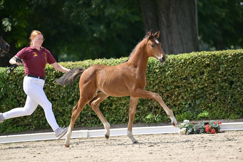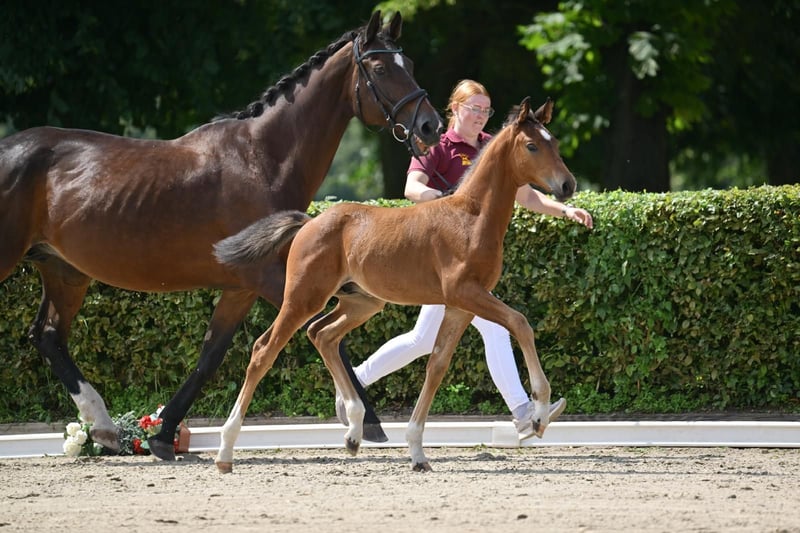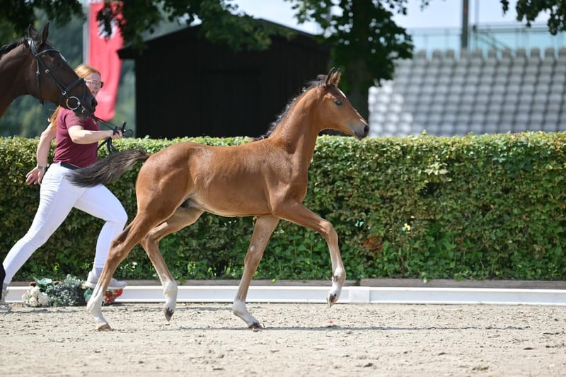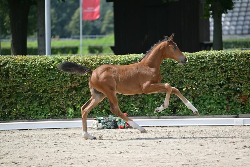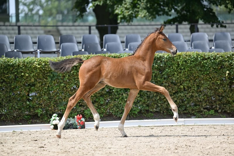 **Sales Advertisement: German Sport Horse** For sale is a promising colt from the first crop of Boccacio. **Features:** - Breed: German Sport Horse - Color: Bay - Year of Birth: 2025 This colt impresses with his excellent movements and balanced temperament. He is suitable for both dressage and breeding and already shows a lot of potential. Sire Boccacio (by Belantis II x Morricone I) was the champion stallion in 2024 in Neustadt Dosse and completed his HLP with a score of 8.44, placing him among the top group of the testing cohort. He is currently the DSP association champion for 4-year-old dressage horses as well as the DSP champion for riding horses - stallions. For more information or to schedule a viewing, please feel free to contact me. Contact me if you are interested!
