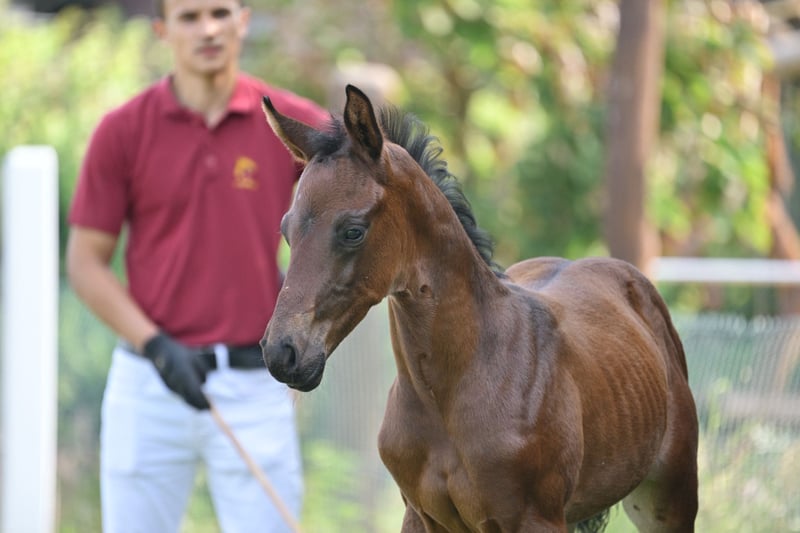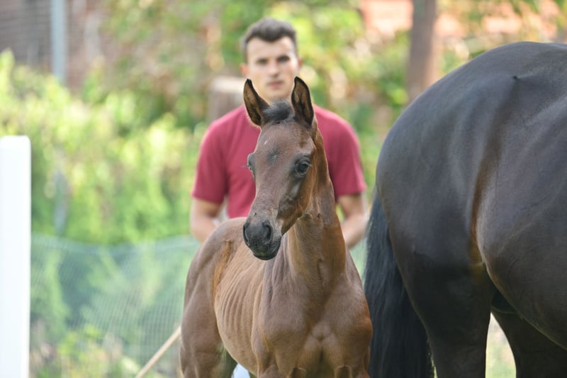 A highly promising yearling stallion with a clear potential for dressage competition is now available for sale. The bay Bandos B impresses with an elegant appearance, plenty of expression, and excellent movement qualities. At the foal inspection, he was awarded premium and champion foal titles, highlighting his extraordinary quality from an early age. **Pedigree** **Sire:** Bonds Bonds is one of Germany’s most influential young dressage sires and leads the FN breeding value rankings. He was himself a licensing winner, HLP champion, and successful in S-level dressage competitions. In 2025, Bonds was the outstanding licensing champion at the DSP Stallion Days in Munich, selling for €770,000, and also the licensing champion at the OL Stallion Days in Vechta—further impressive evidence of his strong genetic influence. **Dam:** Gribaldis Märchen The dam has produced several state-premium mares, including the successful S-level dressage horse Unibaldi by United, as well as multiple state-premium mares. Her sister, Uniteds Märchen by United—Heraldik xx, is successful at Grand Prix level under Kathleen Kröhnke, and her brother by Confess Color was licensed. The highly successful dam line Almmärchen from the Kamphorst family is renowned for producing numerous licensed stallions and Grand Prix horses. **Summary** Bandos B combines top-tier genetics, premium status, and promising prospects for both breeding and sport. An ideal stallion foal for dressage riders looking to invest early in quality. 📍 Location: Schönwalde-Glien 📞 For inquiries or further information, please contact us via WhatsApp at 0160/94418086