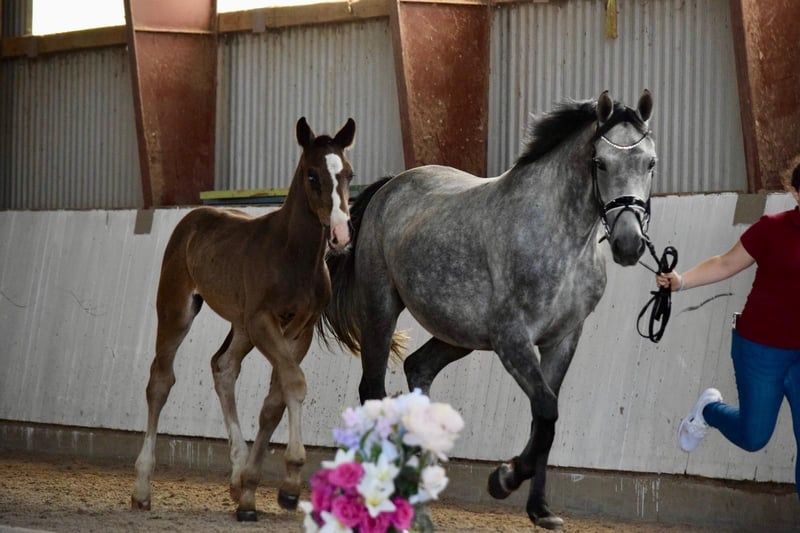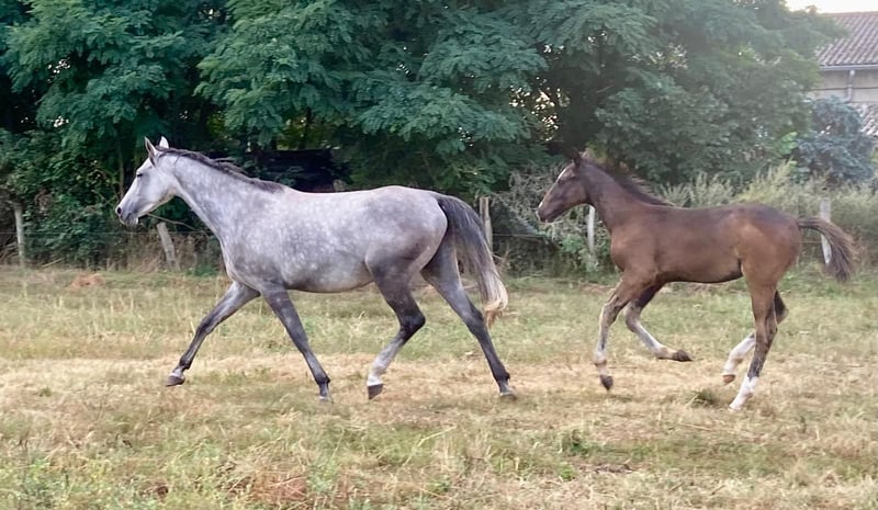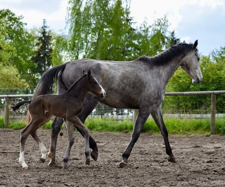 A solid, straight colt with good basic gaits and an energetic foot. A horse that has developed well and quickly into a strong foal. The sire, a very interestingly bred young stallion by Neustadt Dosse, with great performance blood in the pedigree. At the age of four, the dam was already successfully competing in tests for young show jumpers and was the seventh best horse in her age group. She scored very well in the mare test and became state premium mare. https://www.horsetelex.de/horses/pedigree/2590619/s