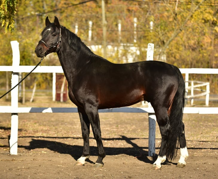 4-jähriger Hengst mit einem Stockmaß von 165 cm. Er ist vollkommen gesund und hat keine Unarten. Ein wunderschönes Pferd. Er wurde ein paar Mal gesattelt. Die Grundlagen kennt er, ist ruhig, gehorsam und leicht zu handhaben. Dank seiner hervorragenden Abstammung verfügt er über großes Talent fürs Springen; seine Bewegungen sind elastisch und energisch. Trotz seines jungen Alters ist er ausgeglichen und zuverlässig – ideal als Basis für den Sport oder Freizeitreiten.