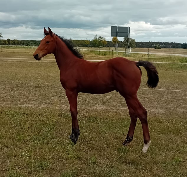 Zum Verkauf steht dieses äußerst gelungene, sehr gut bemuskelte Hengstfohlen von Chac Boy (Sportname Exelero) aus einer Mutter von Chap I (Cellestial). Seine Qualität konnte CHACERO auf der Fohlenschau unter Beweis stellen - hier wurde er als Championatsfohlen ausgezeichnet. CHACERO ist sehr gut bemuskelt, hat ausgeprägte Gelenke und ist schön mit Aufsatz typiert. Er gewinnt dann nochmal, wenn er sich in Bewegung setzt. Er verfügt über einen tollen Bewegungsablauf mit guter bergauf Tendenz und sehr viel Schub aus der Hinterhand. Auch charakterlich besticht er durch seine ausgeglichene umgängliche Art. Das Halftern, Führen und Hufheben absolviert er mit Bravur. Er wird demnächst von der Mutter abgesetzt. Beschreibung des Vaters: 1,60 Meter-Springstar Chac Boy siegte unter seinem Sportnamen Exelero mit Nicola Pohl in Nationenpreisen und Großen Preisen. Mit Cian O’Connor/IRL im Sattel belegte er Rang acht im StädteRegion Aachen-Topspringen beim CHIO Aachen. Seine Nachkommen eifern ihm nach und sind bereits bis 1,50 Meter-Springen erfolgreich, wie Carepetit PS/Emilia Löser, Tailormade Chac Blue/Nicolas Pedersen/DEN, Chac Staro PS/Guillaume Roland Billecart/FRA, Chalasanga PS/Christian Marni/ITA, BS Chaccalina/Lovisa Stintzing/SWE und Chac Boy’s Centura PS. Sein gekörter Sohn Chacwood PS bewährt sich unter Patrick Stühlmeyer bereits in Springpferdeprüfungen. Die Nachkommen des Chac Boy sind äußerst begehrt. Bei der Hof Kasselmann & Schockemöhle Hybrid Auktion erzielte Carepetit PS den 285.000 Euro- Spitzenpreis. Bei den Schockemöhle Young Jumpers Online-Auctions war Chactula 130.000 Euro-Preisspitze, ihr Vollbruder Chac Boy’s Royce wurde für 101.000 Euro zugeschlagen. Der Vater Chacco-Blue, selbst Dritter im Großen Preis von Aachen und Sieger im Großen Preis von Neumünster, war von 2017 an sechs Jahre in Folge die Nummer eins im WBFSH-Ranking der weltbesten Springvererber und steht seit 2023 auf Platz zwei. Auf das züchterische Konto des Elitehengstes gehen der Olympiasieger, EM-Einzel-Silber- und Team-Bronzegewinner und Global Champions Tour-Sieger Explosion W/Ben Maher/GBR, der Olympia-Sechste Chanyon/Daisuke Fukushima/JPN, der Team-Europameister Chaqui Z/Shane Sweetnam/IRL, der Zweite im Nations Cup-Finale Chacon/Eoin McMahon/IRL und der Weltcup-Final-Siebte EIC Up Too Jacco Blue/Max Kühner/AUT. Bei nahezu allen Championaten stellte Chacco-Blue die meisten Nachkommen. Die Mutter Tailormade Balonie siegte unter Andreas Kreuzer in 1,50 Meter-Springen. Ihre Lebensgewinnsumme beläuft sich auf rund 30.000 Euro. Sie brachte insgesamt acht internationale Springpferde, darunter Chac Boys Vollbruder Chaccobeto, der mit Emanuele Gaudiano/ITA bis 1,60 Meter-Springen erfolgreich ist. Der Muttervater Baloubet du Rouet gewann 1998 unter Rodrigo Pessoa/BRA das Weltcup-Finale und wiederholte diesen Sieg 1999 und 2000. Die Olympischen Spiele 2000 in Sydney/AUS beendete das Paar mit der Team-Bronzemedaille. Vier Jahre später krönten beide ihre gemeinsame Karriere mit Olympischem Gold in der Einzelwertung in Athen/GRE. Der von Galoubet abstammende Selle Francais-Fuchs machte auch als Vererber Karriere. Allein seine in Deutschland registrierten Nachkommen verdienten über 5,2 Millionen Euro, zu denen sein gekörter Sohn Chaman/Ludger Beerbaum mehr als 1,83 Millionen beisteuerte. Zur züchterischen Bilanz gehören über 110 gekörte Söhne und mehr als 120 1,60 Meter-Jumper, wie der EM-Bronzegewinner Dubai du Cedre/Julien Epaillard/FRA, VDL Bubalu/Jur Vrieling/NED, Sydney une Prince/Roger Yves Bost/FRA, Napoly Du Ry/Simon Delestre/FRA, AS Rahmannshof’s Bogeno/Alvaro Mirnada Neto/ESP, South Wind VDL/Cameron Hanely/IRL und Palloubet d’Halong/Jannika Sprunger/SUI. Aus der zweiten Mutter Alonize Z stammen die 1,60 Meter-Jumper Chaventyno/Todd Minikus/USA und Chacon (beide v. Chacco-Blue). Chacon belegte bei der EM 2021 in Riesenbeck unter Eoin McMahon/IRL Rang acht im Einzel. Die dritte Mutter Philonie platzierte sich unter Christian Ahlmann in M-Springen. Sie brachte den gekörten Hengst Kilot (v. Kannan) und das S-Springpferd Quick Ball (v. Quick Star)/Toni Stormanns. Trakehnerfamlie der Ethel, daraus auch der gekörte Hengst Look-O-Look Z (v. Le Blue Diamond). Mutter ist Vollschwester zum EM-Achten Chacon/Eoin McMahon/IRL Weitere Informationen zum Vater befinden sich unter: https://shop.schockemoehle.com/Chac-Boy/DE418181359408 Beschreibung zur Mutter: Der älteste Nachkomme der Mutter war in Deutschland bereits als Youngster in 1,35 m Springen erfolgreich unterwegs und wurde dann in die USA verkauft. CHACEROs Mutter vererbt ihren Nachkommen Vermögen und eine sehr gute Technik am Sprung sowie Typ und besonderen Schick. Erfolgsstute Chakaria (2024 siegreich im Rolex Grand Prix in Aachen) von Europameister André Thieme hat ebenfalls Chap I als Vater.
