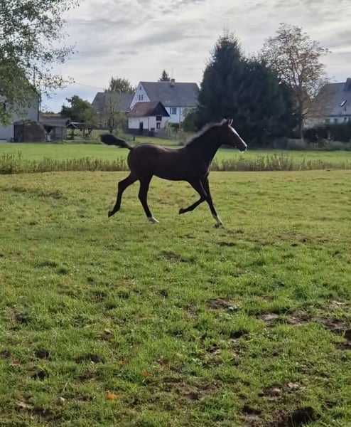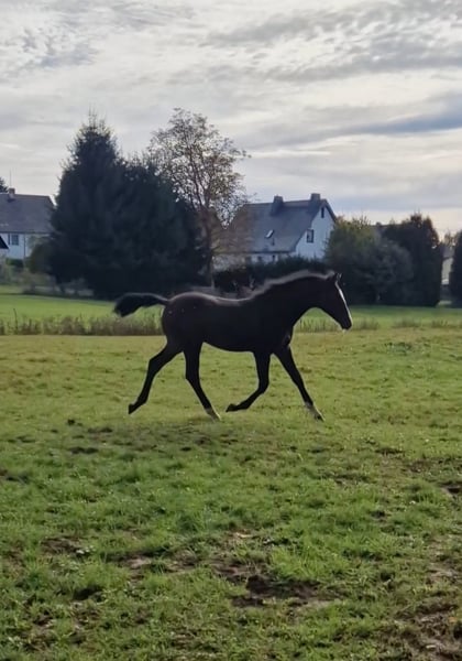 Wir verkaufen unseren am 20.05.2025 geborenen Hidalgo. Dieser typvolle, bewegungsstarke junge Hengst vereint in idealer Weise die Dynamik und Präsenz seines Vaters Haaland mit der bewährten Sprungtechnik des Chico's Boy. Bereits jetzt zeigt er eine gute Galoppade, viel Balance und ein überaus korrektes Fundament. Sein aufgeschlossenes Wesen und seine Coolness im täglichen Umgang machen ihm zum echten Lieblingspferd mit Zukunft. Bei Interesse stehe ich gerne für weitere Informationen und einen persönlichen Eindruck zur Verfügung.