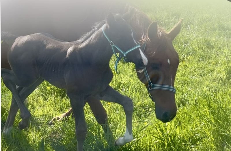 Zum Verkauf steht dieses außergewöhnlich schicke Hengstfohlen von Global Dancer aus einer Sir Heinrich x Fleurop Mutter. Er besticht mit korrektem Fundament und Gebäude, hervorragenden Bewegungen sowie einem aufgeschlossenen, gelehrsamen Wesen. Dieses Rappfohlen mit weißen Socken und schöner Blässe verspricht ein Highlight in jeder Dressurprüfung zu werden und bietet bestes Potenzial auch in der Zucht zum Einsatz zu kommen. Galileo hat das Fohlen ABC gelernt, wurde regelmäßig entwurmt und dem Hufschmied vorgestellt. Das Fohlen kann gerne besichtigt werden, Videos können vorab bei Interesse gesendet werden. Verkauf von privat ohne Mehrwertsteuer.