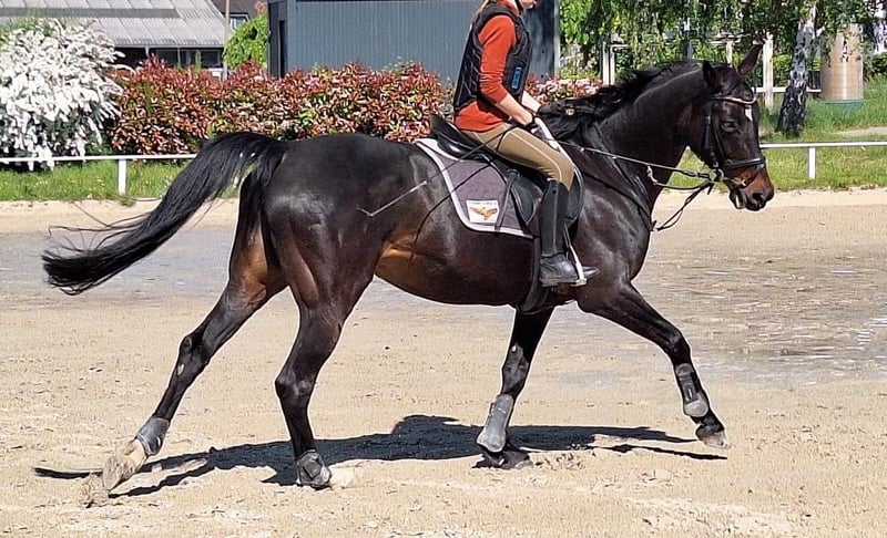 Schweren Herzens suchen wir für unsere 10-jährige Deutsche Sportpferd-Stute ein neues Zuhause. Sie ist eine ehrliche, leistungsbereite Partnerin mit viel Ausstrahlung und drei schöne, ausdrucksstarken Grundgangarten. Im Training und auf kleineren Turnieren zeigte sie bisher ihr Talent im Springen (bis A*). Mit V Landor S und MV For Pleasure (dem Weltklassespringpferd und zweifachen Olympiasieger) hat diese Stute auf jeden Fall das Potenzial für mehr – sowohl im Spring- und Dressurbereich. Unsere Stute hat Freude an der Arbeit, ist temperamentvoll und sensibel zugleich. Mit feinfühligem Reiten zeigt sie sich kooperativ und motiviert, wobei sie eine erfahrene, ruhige Hand benötigt, die ihre Energie gezielt lenken kann. Im Umgang ist sie aufmerksam, freundlich und stets bemüht, alles richtig zu machen – egal ob bei der Dressur- und Bodenarbeit, im Parcours oder im Gelände. Gesundheitlich ist sie topfit: keine Befunde, regelmäßig geimpft, entwurmt und dem Schmied und dem Zahnarzt vorgestellt. Wir geben sie nur ab, weil sie für unsere zierliche, 14-jährige Tochter auf Dauer zu kräftig ist und sie das volle Potenzial dieses wunderschönen Pferdes nicht ausschöpfen kann. Für eine*n erfahrenen, ambitionierten Reiter*in ist sie genau die richtige Partnerin!
