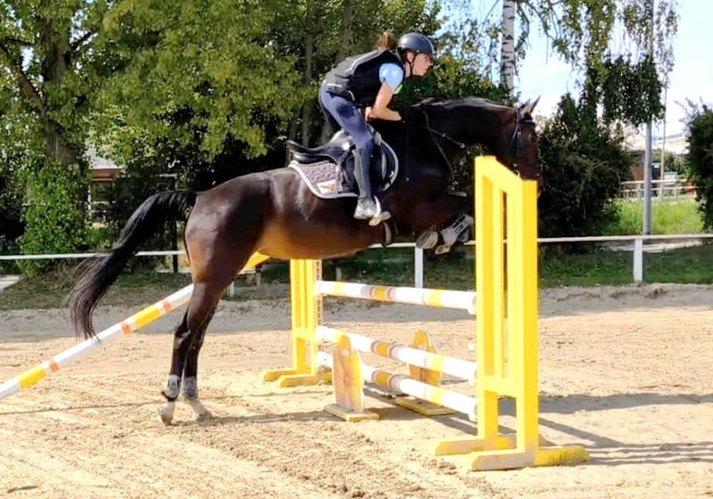 Schweren Herzens suchen wir für unsere 10-jährige Deutsche Sportpferd-Stute ein neues Zuhause. Sie ist eine ehrliche, leistungsbereite Partnerin mit viel Ausstrahlung und drei schöne, ausdrucksstarken Grundgangarten. Im Training und auf kleineren Turnieren zeigte sie bisher ihr Talent im Springen (bis A*). Mit V Landor S und MV For Pleasure (dem Weltklassespringpferd und zweifachen Olympiasieger) hat diese Stute auf jeden Fall das Potenzial für mehr – egal ob im Spring- oder Dressurbereich. Unsere Stute hat Freude an der Arbeit, ist temperamentvoll und sensibel zugleich. Mit feinfühligem Reiten zeigt sie sich kooperativ und motiviert, wobei sie eine erfahrene, ruhige Hand gerne hat, die ihre Energie gezielt lenken kann. Im Umgang ist sie aufmerksam, freundlich und stets bemüht, alles richtig zu machen – egal ob bei der Dressur- und Bodenarbeit, im Parcours oder ins Gelände. Gesundheitlich ist sie topfit: keine Befunde, regelmäßig geimpft, entwurmt und dem Schmied und dem Zahnarzt vorgestellt. Wir geben sie nur ab, weil sie für unsere zierliche, 14-jährige Tochter auf Dauer zu kräftig ist und sie das volle Potenzial dieses wunderschönen Pferdes nicht ausschöpfen kann. Für eine*n erfahrenen, ambitionierten Reiter*in ist sie genau die richtige Partnerin!