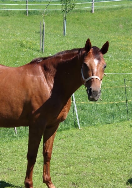 Cosima was bought by the breeder directly after the foal presentation and has been in the open stable ever since. She shows strong potential in all gaits and shines with an outstanding pedigree. As she has not yet been ridden, she can be trained at your own discretion to become a successful dream horse. We are looking for a place for life with paddock access and lots of variety. Was in training with Timo Ameruoso for a while.