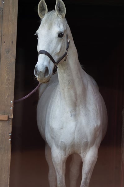 For sale is our 11-year-old grey mare, "Landmaid," an exceptionally gentle and people-oriented horse that impresses both through her quality and her character. Landmaid was broken as a young horse and has since been successfully used in breeding. She has already produced very appealing offspring and has proven to be a reliable broodmare. Currently, she is not yet back in work but is in the process of being retrained. Gentle groundwork and reconditioning are planned for the coming weeks and months. This presents a wonderful opportunity for her future owner: With her solid basic training, calm temperament, and high affinity for humans, she offers excellent prerequisites for a smooth reintroduction to riding and tailored development. In daily handling, she is absolutely well-behaved, honest, and affectionate – a mare that quickly wins hearts and makes work a pleasure. Her pedigree leaves nothing to be desired: As a daughter of the internationally successful show jumper Colestus (by Cornet Obolensky), she combines modern performance bloodlines, talent, and rideability. Colestus is renowned for quality in show jumping and successful offspring – qualities that this mare also possesses. She is not only interesting for sport but also an exciting option for breeding. Landmaid originally arrived with a diagnosed periodic eye inflammation. In our care, she showed no limitations. Only during summer, with intense fly activity, a slightly teary eye may occasionally be observed. Otherwise, she has always been unremarkable. The sale is due to a reduction in stock. A rare opportunity for those seeking an honest, experienced mare with top pedigree – whether for breeding or as a partner for re-education and further development. If you are interested or would like more information, we look forward to hearing from you.