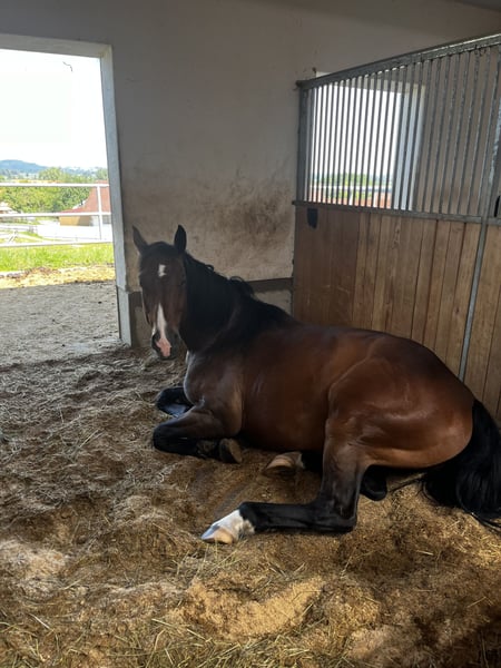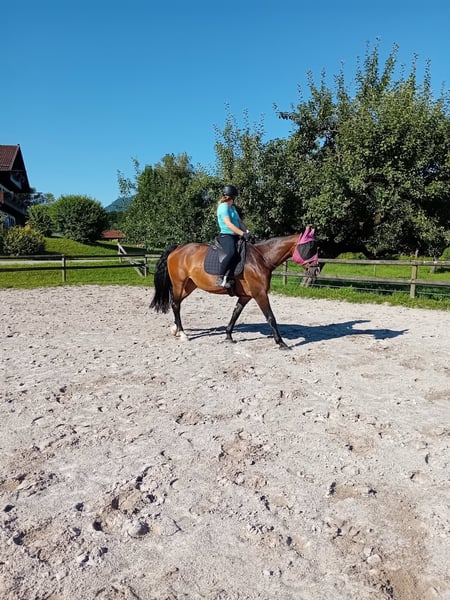 Ich suche für meine 11 jährige Stute, deutsches Sportpferd, eine Reitbeteiligung auf Zeit, da sie zum Verkauf steht. Sie ist etwas schreckhaft und braucht eine ruhigen Reiter, der sich von einem Hüpfer nicht abschrecken lässt. Ich mache viel Bodenarbeit (akademische Reitkunst) mit ihr. Hat keinerlei Unarten, und ist sehr verschmust. Man muss also Zeit zum Kuscheln einplanen :) Tage sind flexibel