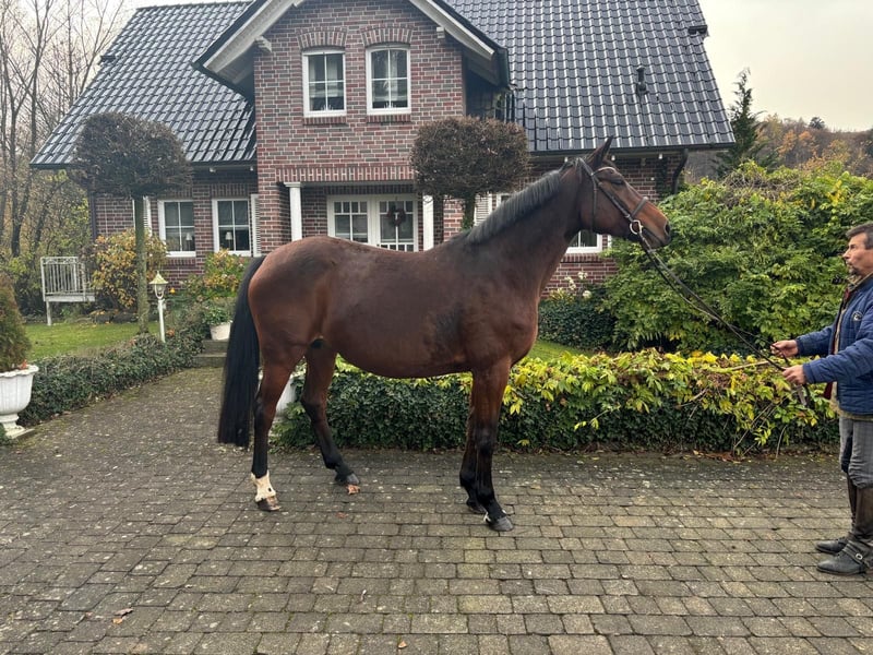 For sale: German sport horse – elegant bay mare, born in 2014, with a height of approximately 16.1 hh. This well-bred broodmare impresses with her solid basic training and versatile potential. She exhibits a calm, balanced temperament. She possesses three outstanding basic gaits. We have already produced seven foals from her. All of her offspring have been exceptional types with excellent basic gaits and very good rideability. Currently, she is in foal to Morricone by Millennium x Rubin Royal (Grand Prix winner, stallion star, main premium winner, and Oldenburg champion stallion).