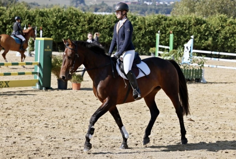 We are offering for sale a beautiful 12-year-old Hanoverian mare. She is an excellent choice for both sport and recreational riding. This talented mare comes from a quality jumping line – her sire is Volonter T and her dam is by Caresino. In sport she is currently competing at ZL level, where she has been ridden by a junior rider. She is careful, easy to ride, and has a pleasant temperament. She enjoys jumping, is willing and eager to learn, which makes her suitable for a rider who wants to continue developing. At the same time, she is reliable and safe for hacking in the countryside. Thanks to her comfortable gaits, she could also do very well in lower-level dressage competitions. In everyday care she is completely problem-free – healthy, without vices, and easy to handle. She is dependable in the arena and works well with her rider. She also loves trail rides and is calm, balanced, and not spooky in open terrain, whether ridden alone or in a group. She is currently kept in pasture housing. We are looking for a loving home where she can continue to develop her potential. For more information, videos, or to arrange a viewing, please feel free to contact us!