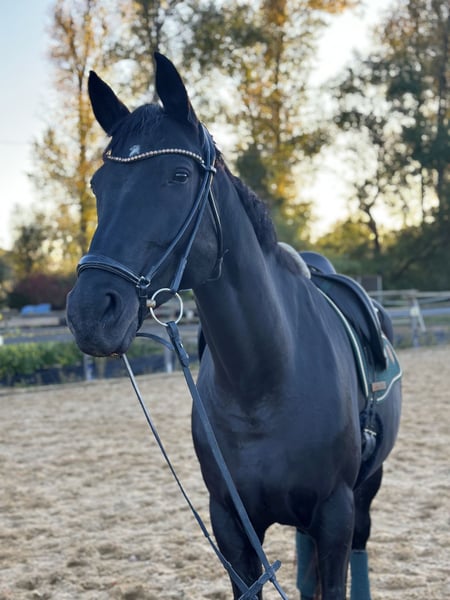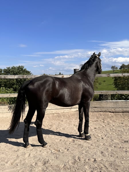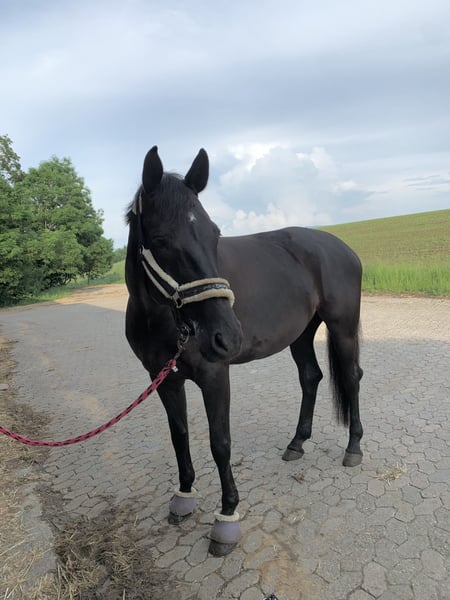 Schweren Herzens suche ich für meine wunderschöne, typvolle Rappstute Gina ein neues Zuhause. Die Entscheidung fällt mir nicht leicht, daher wird sie ausschließlich an einen absoluten Bestplatz abgegeben. Sie überzeugt durch ihren edlen Typ, und einen freundlichen, menschenbezogenen Charakter Sie ist ein sehr aufmerksames Pferd, welches verstanden werden möchte. Aufgrund eines Sehnenschadens sowie leicht ausgeprägter Kissing Spines wird sie nicht mehr im Sport eingesetzt. Die Befunde wurden tierärztlich abgeklärt. Aus tierärztlicher Sicht steht einer Nutzung als Zuchtstute nichts im Wege. Gina hatte bereits im Juni 2025 ihr erstes Fohlen, welches ohne Komplikationen und gesund auf die Welt kam. Als Mutterstute zeigte sie sich sehr vertrauensvoll, umgänglich und zuverlässig. Mir ist besonders wichtig, dass sie in ein liebevolles Zuhause mit viel Pferdeverstand kommt, in dem sie wertgeschätzt wird und ihre Zukunft als Zuchtstute genießen darf. Weitere Informationen, sowie Bilder und Videos sende ich Ihnen gerne bei ernsthaftem Interesse zu. Platz vor Preis! Sie wird nur in verantwortungsvolle Hände abgegeben.